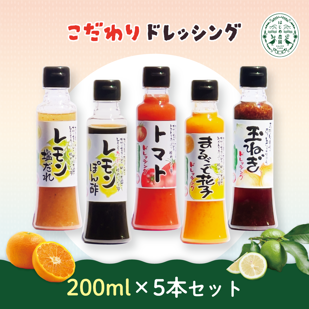 こだわりドレッシング【200ml 5種セット】 ポストする シェアする 販売価格: 4,950円(税込み) 会員価格 (税込み) 通常価格 (税込み) 在庫 商品コード JANコード 数量 - + カートに入れる 入荷通知メールを希望する